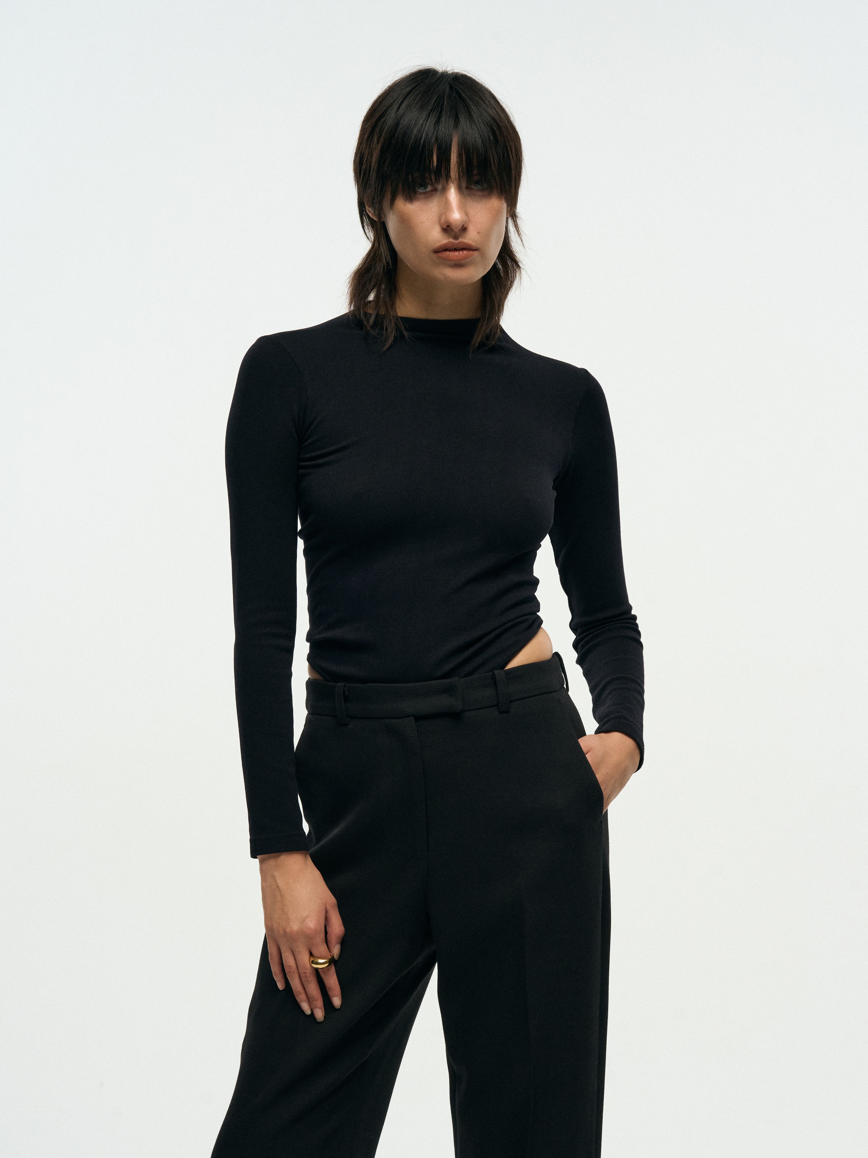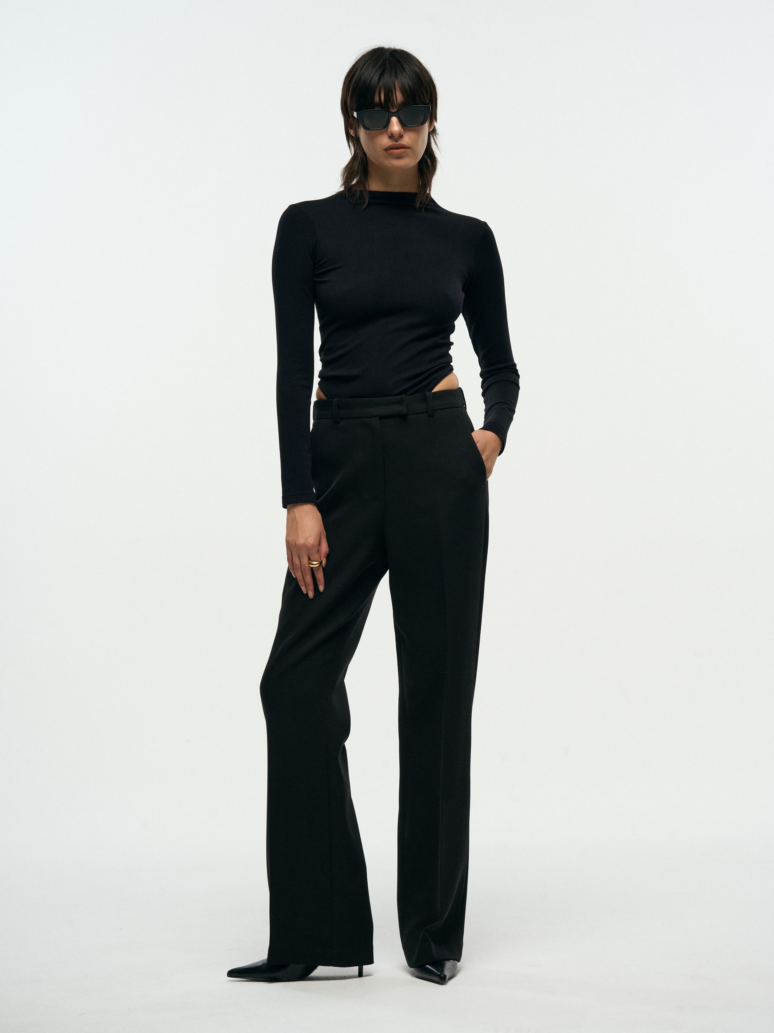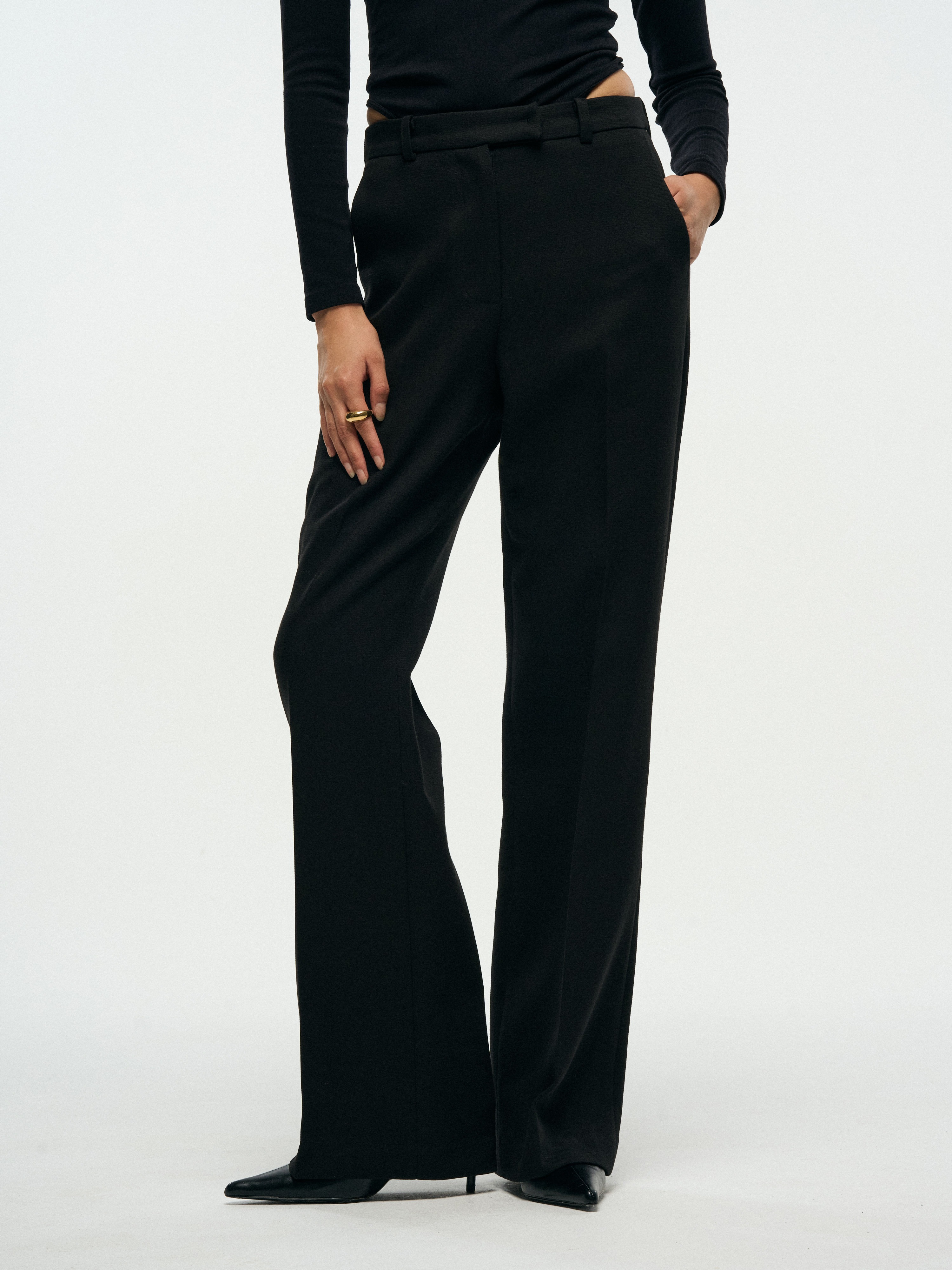 180343 SLIM WIDE TROUSERS - BLACK