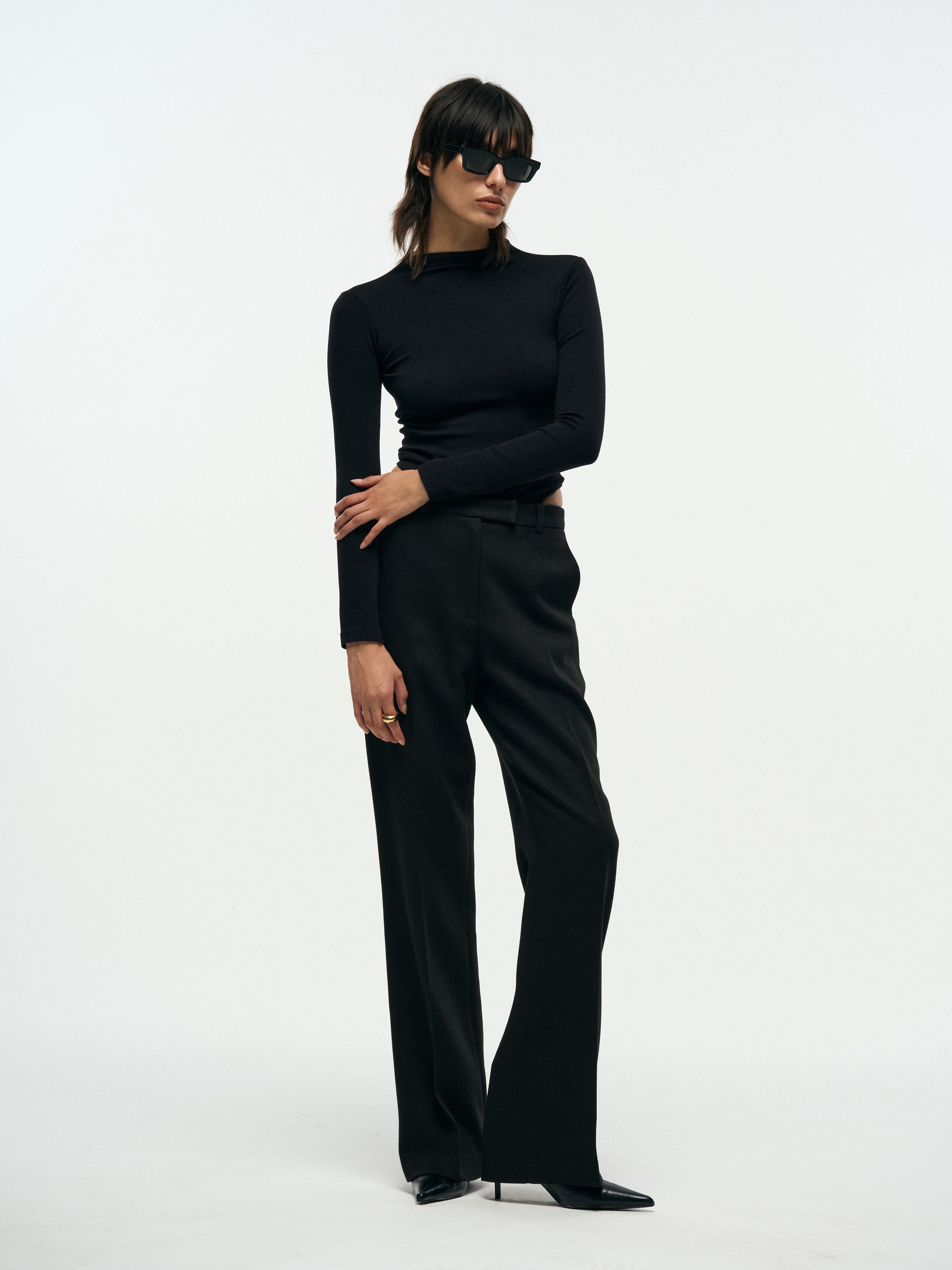 SLIM WIDE TROUSERS - BLACK