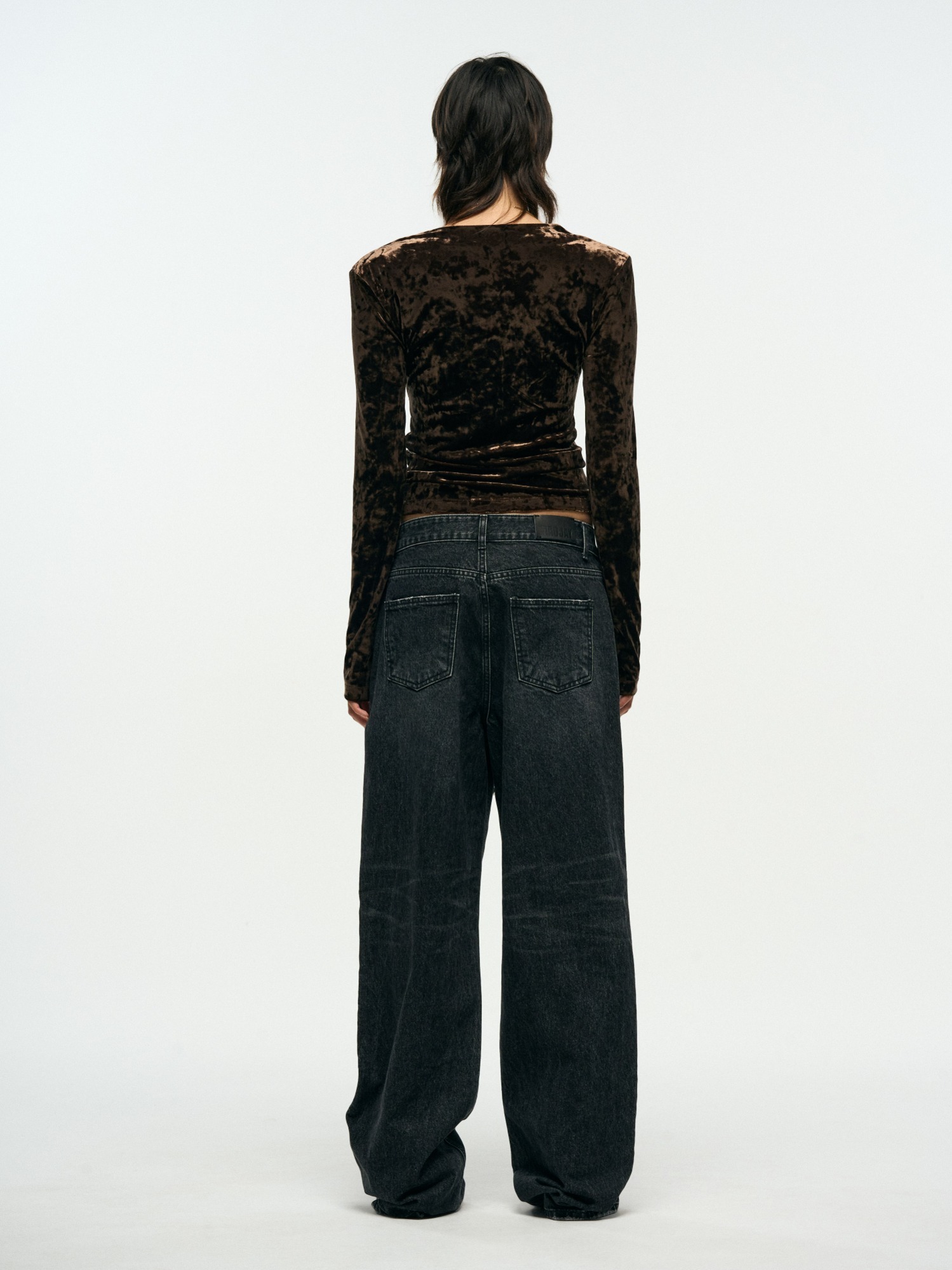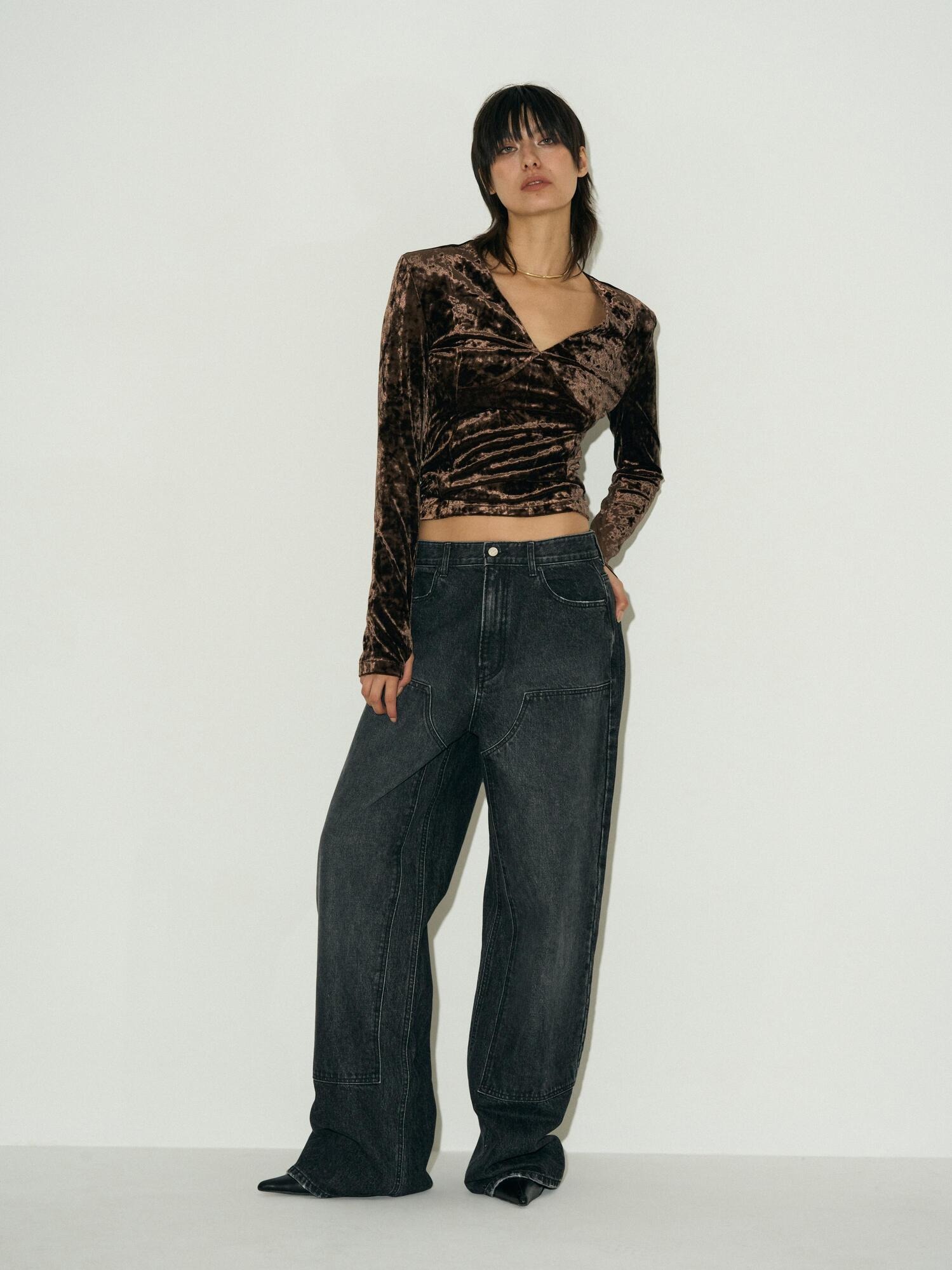 [BRANDUID] VELVET V-NECK SLIM TOP - BROWN