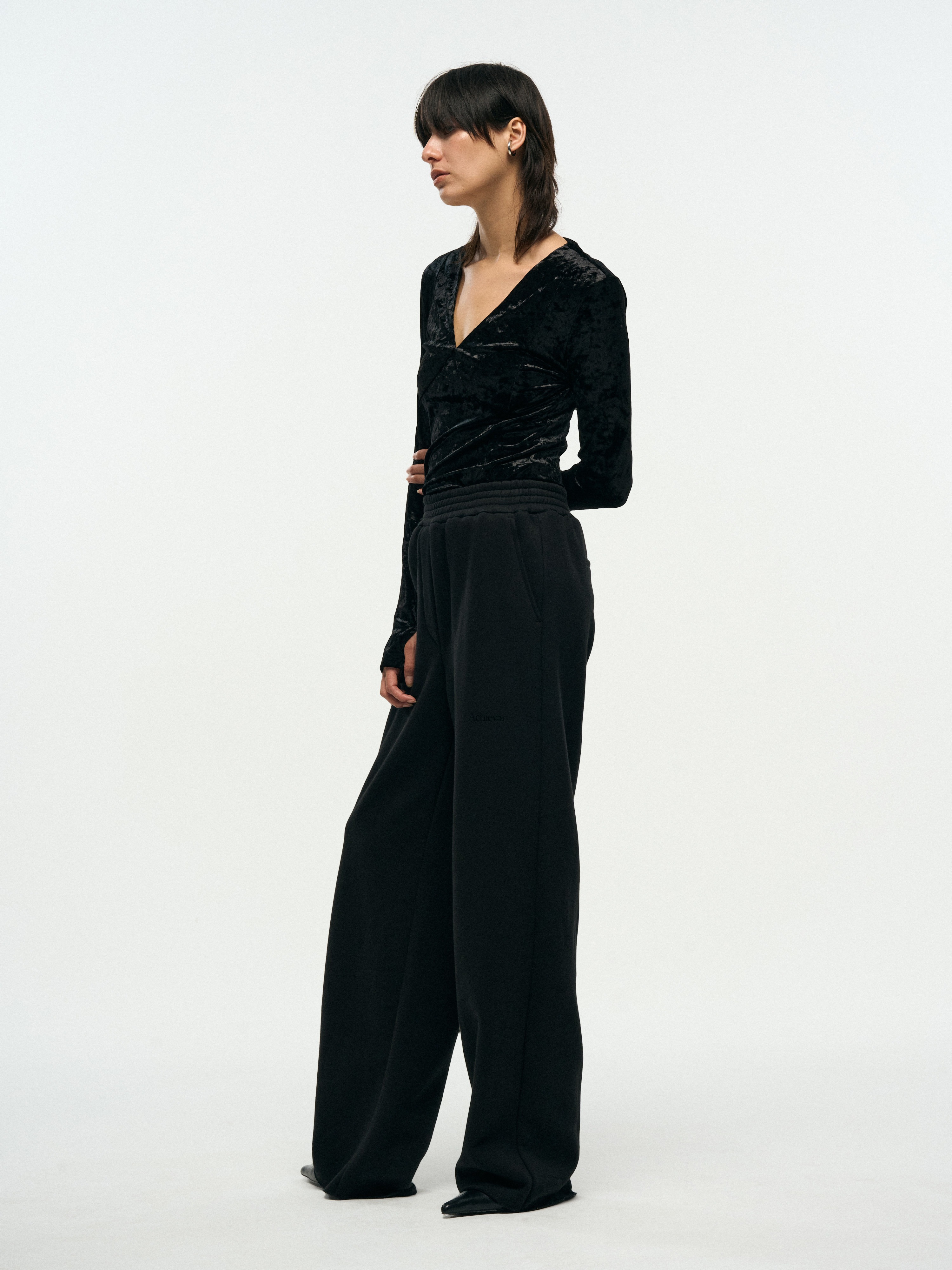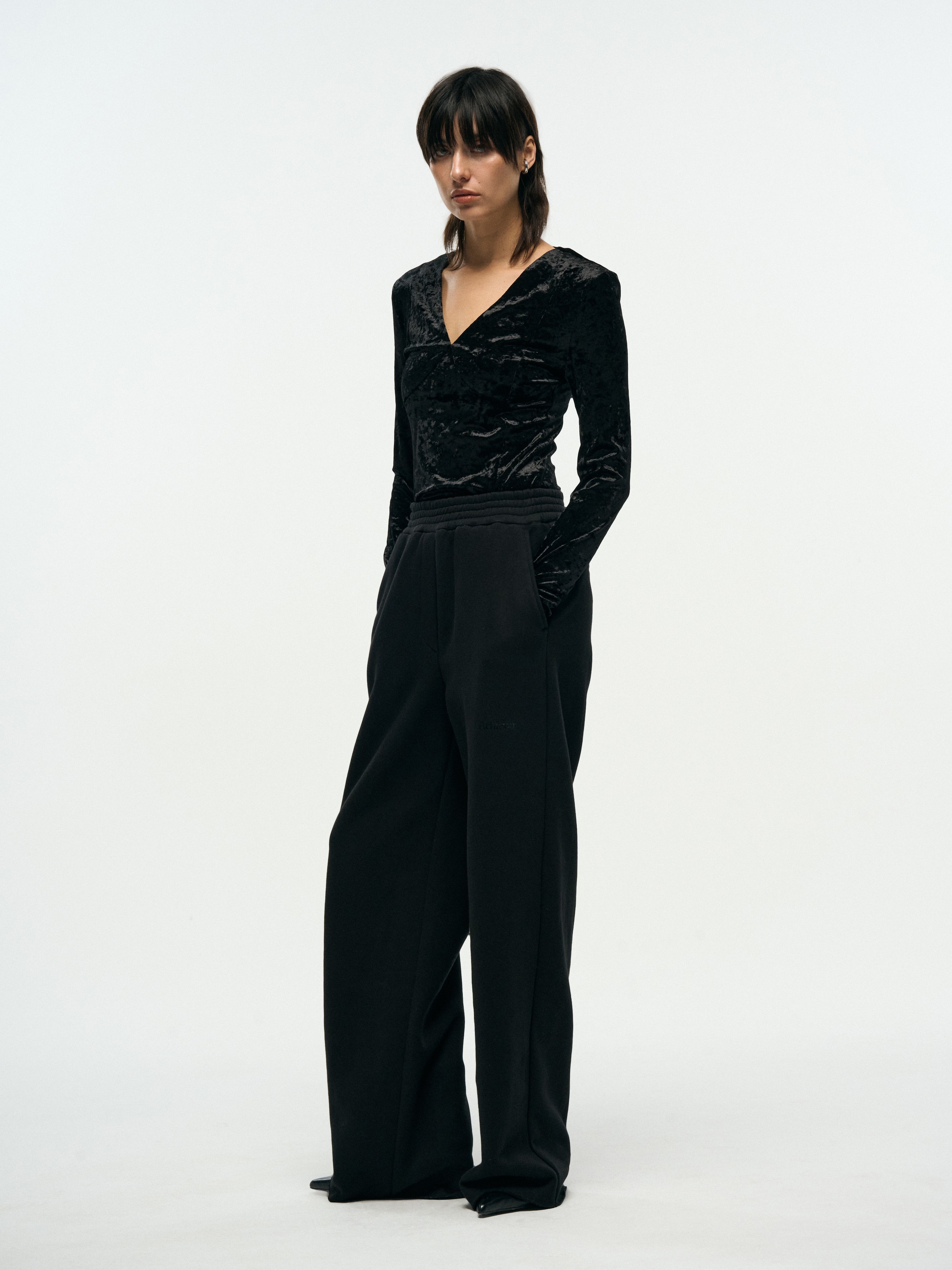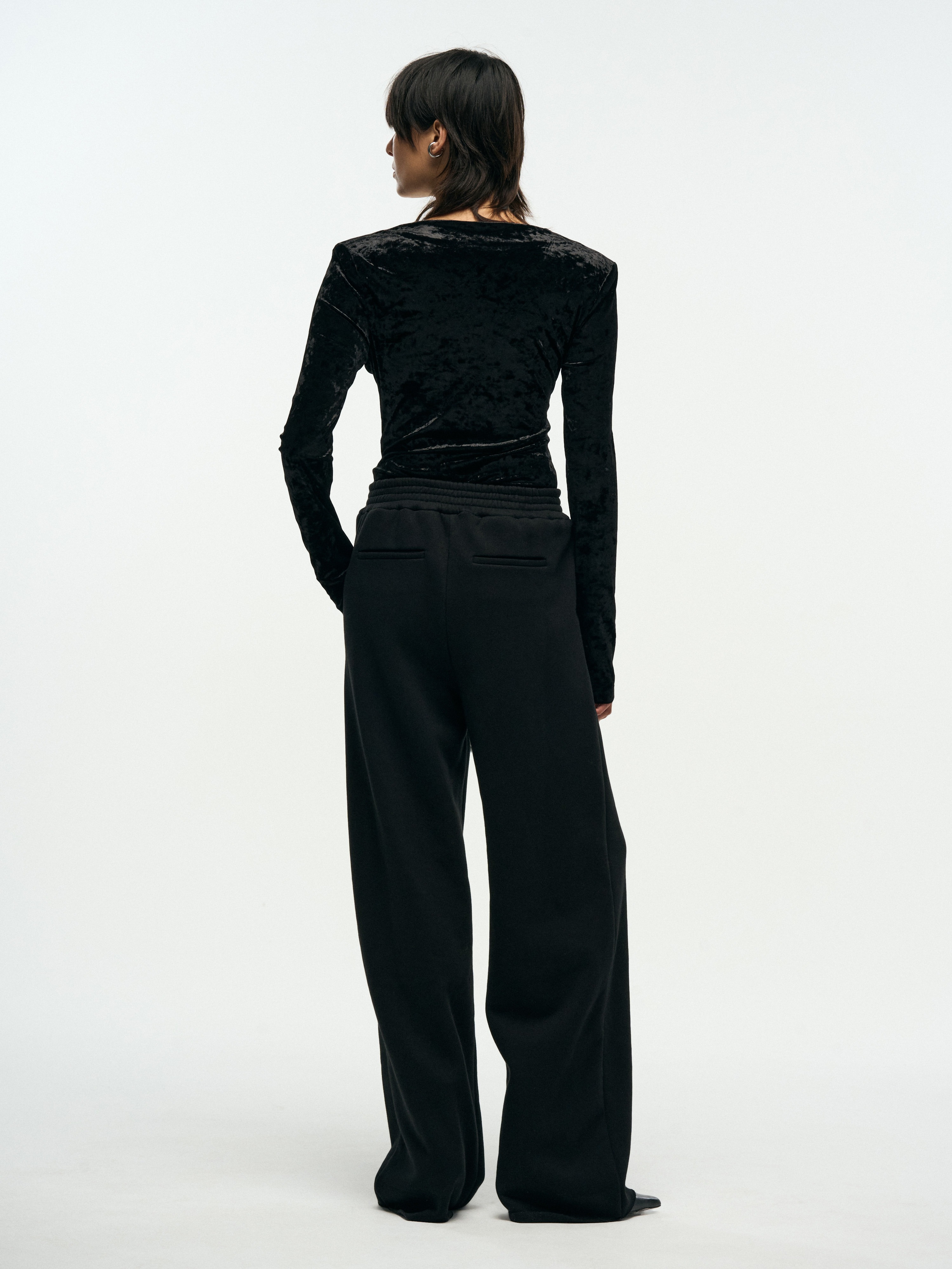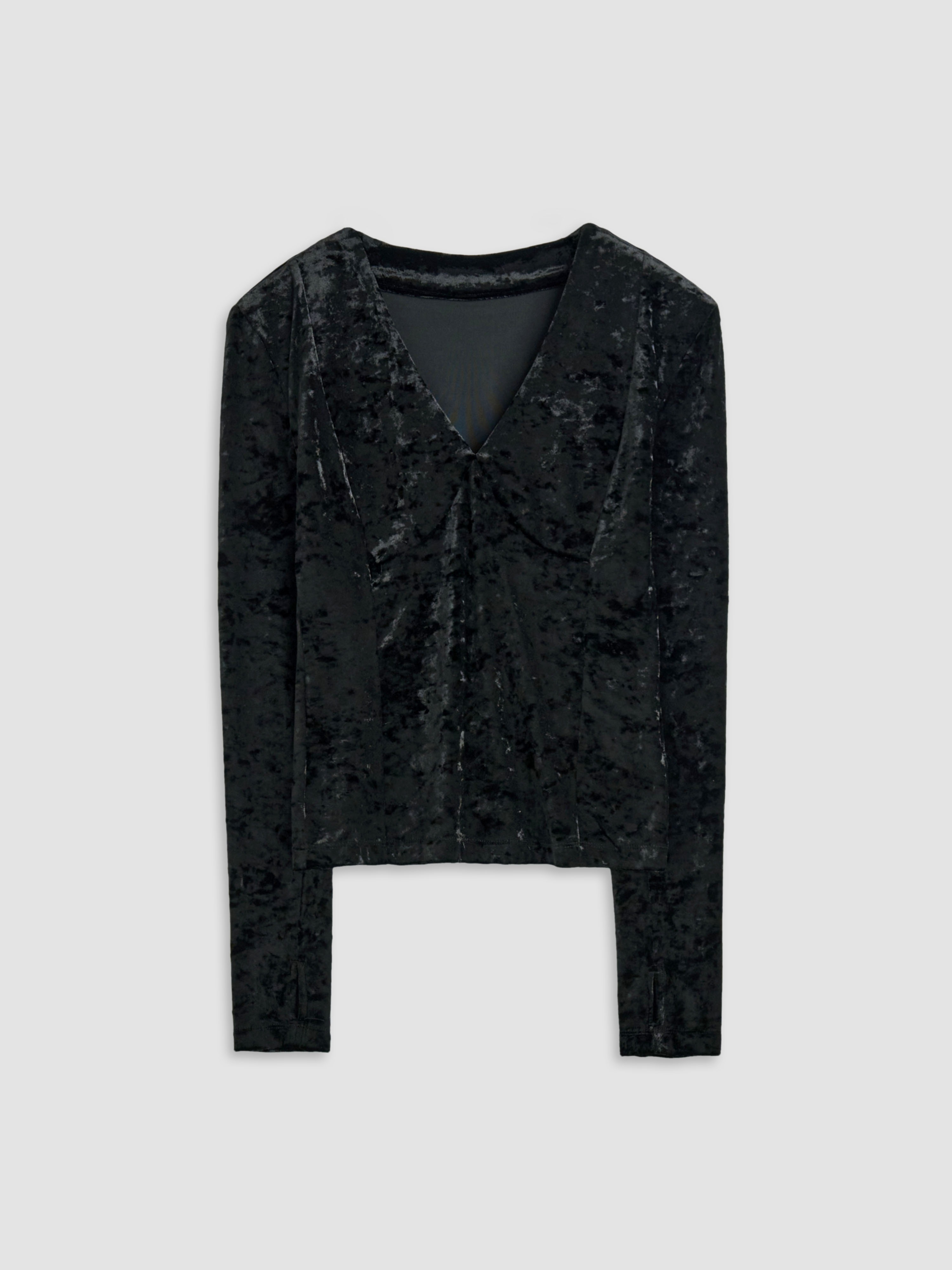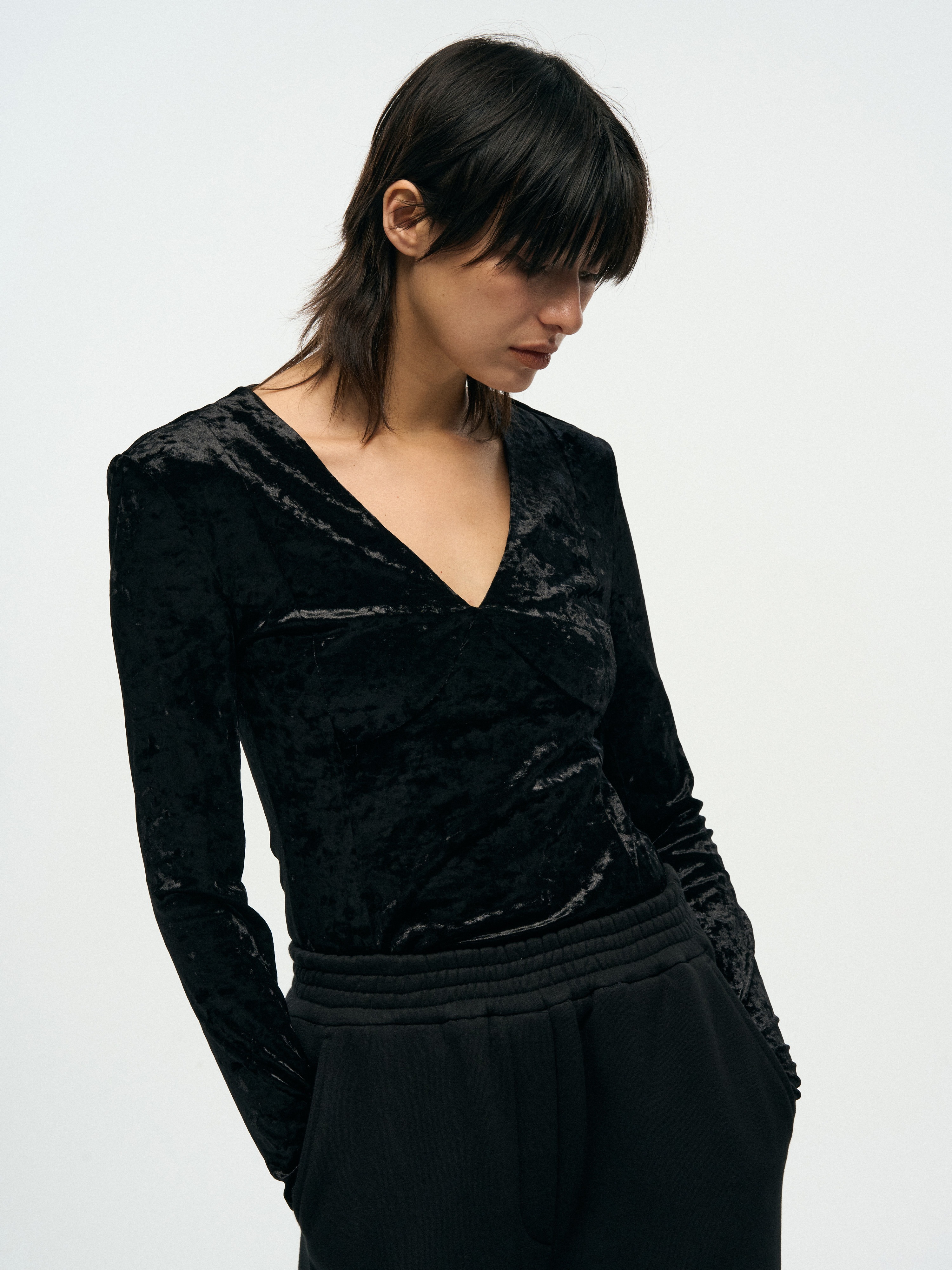 VELVET V-NECK SLIM TOP - BLACK