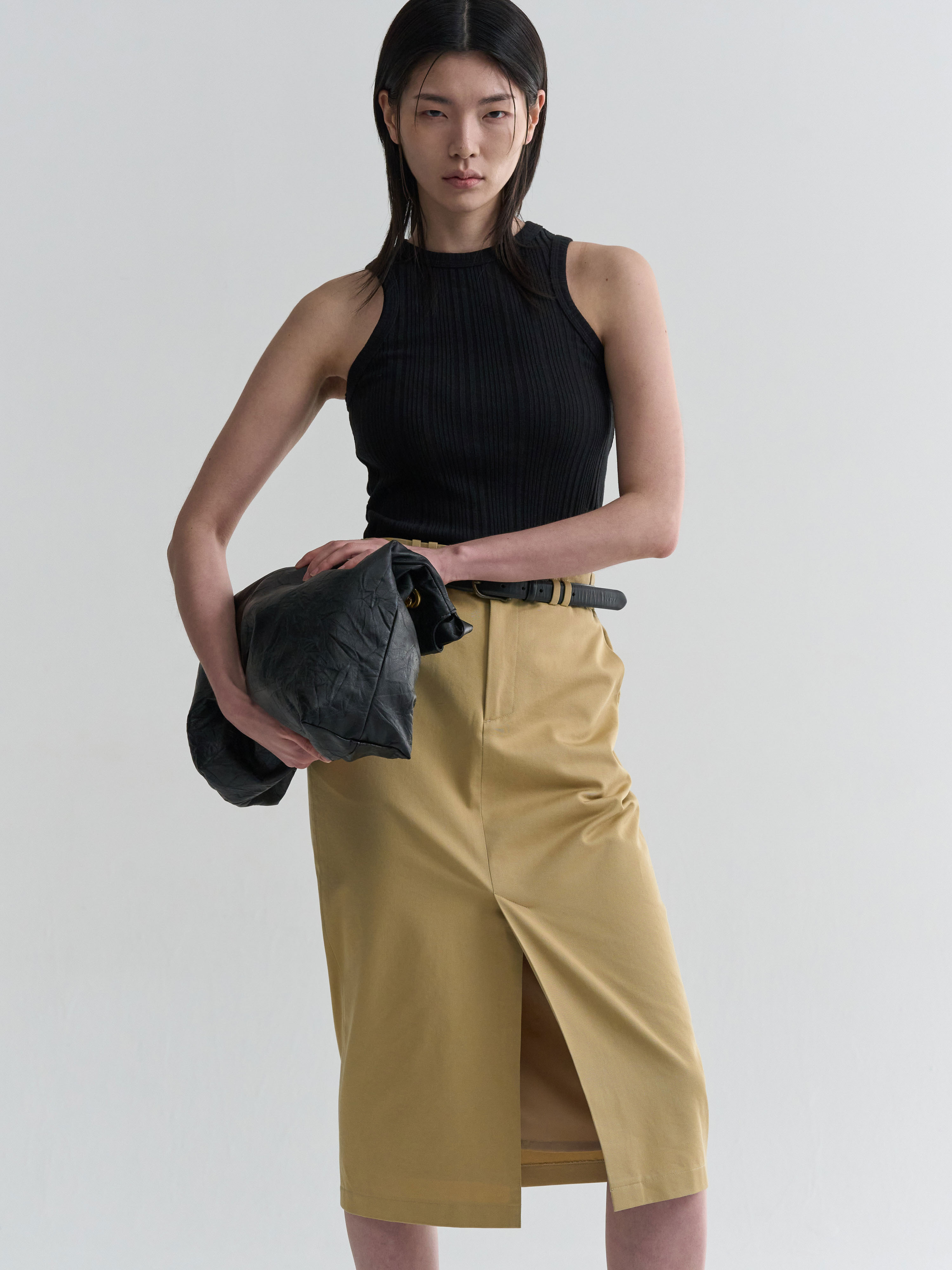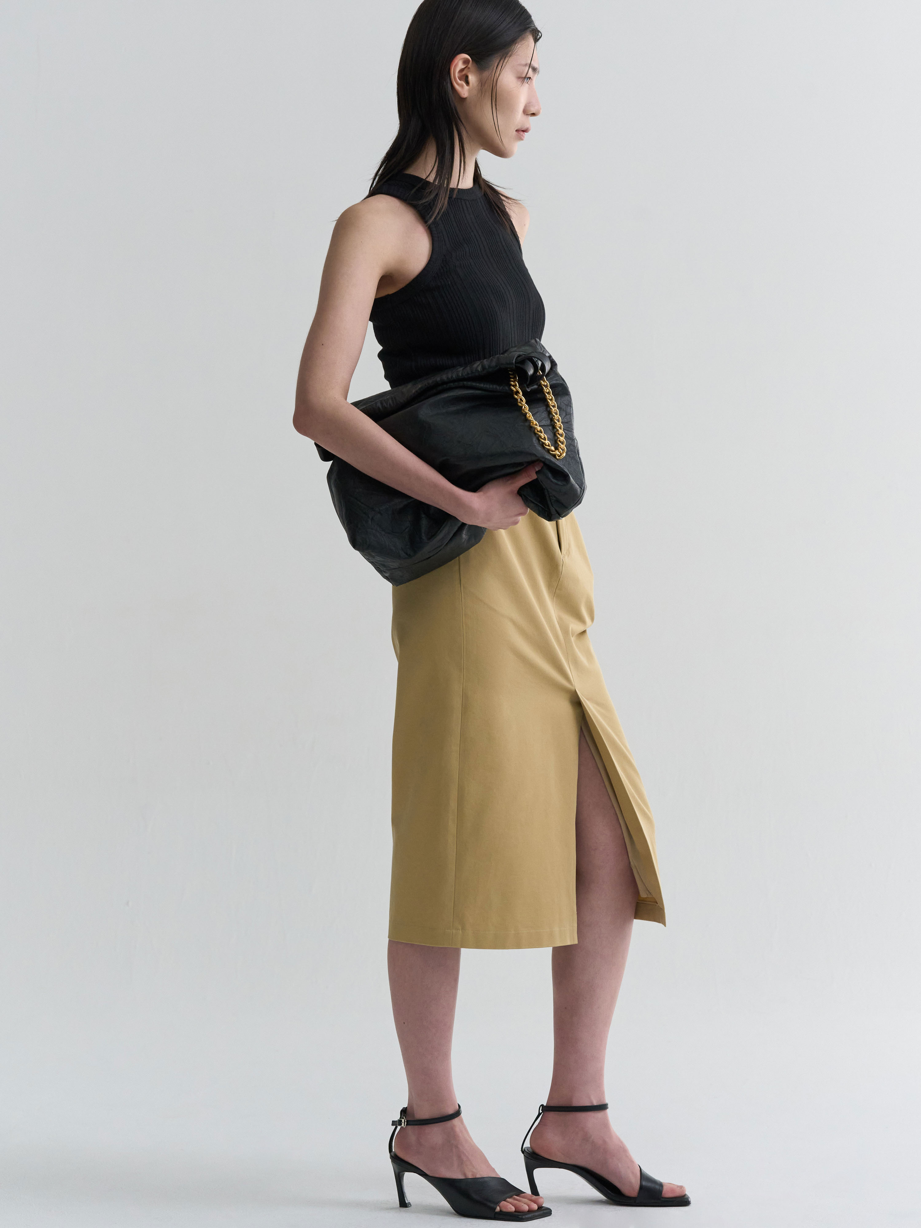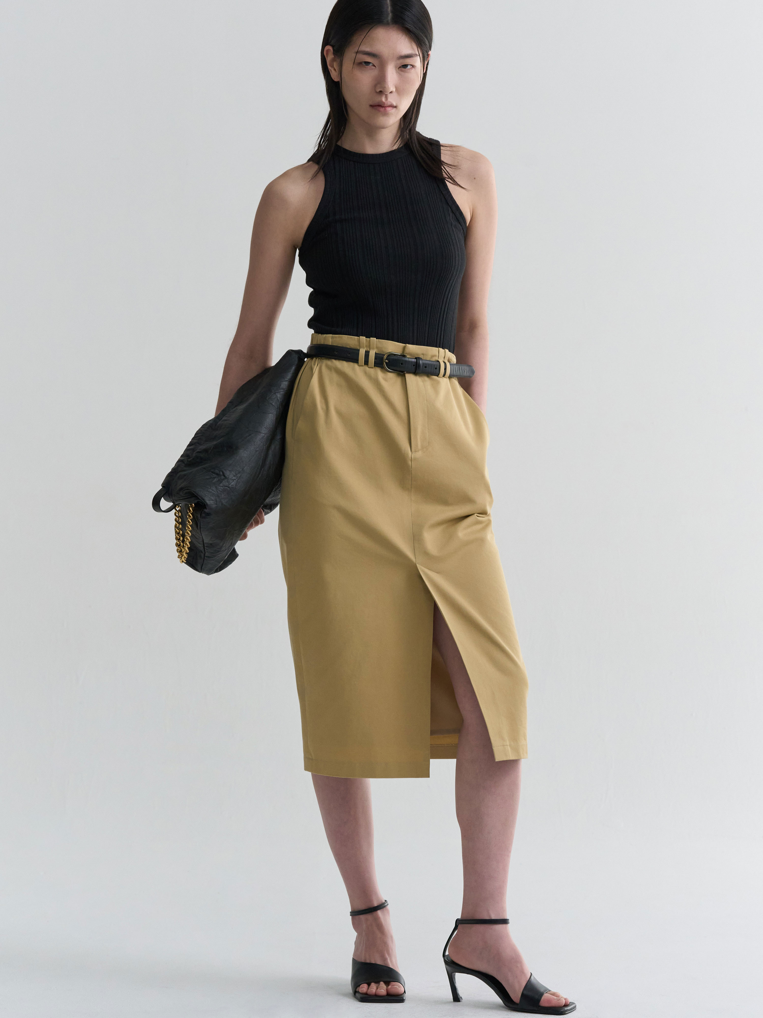 [BRANDUID] CLASSIC MIDI SKIRT - BEIGE