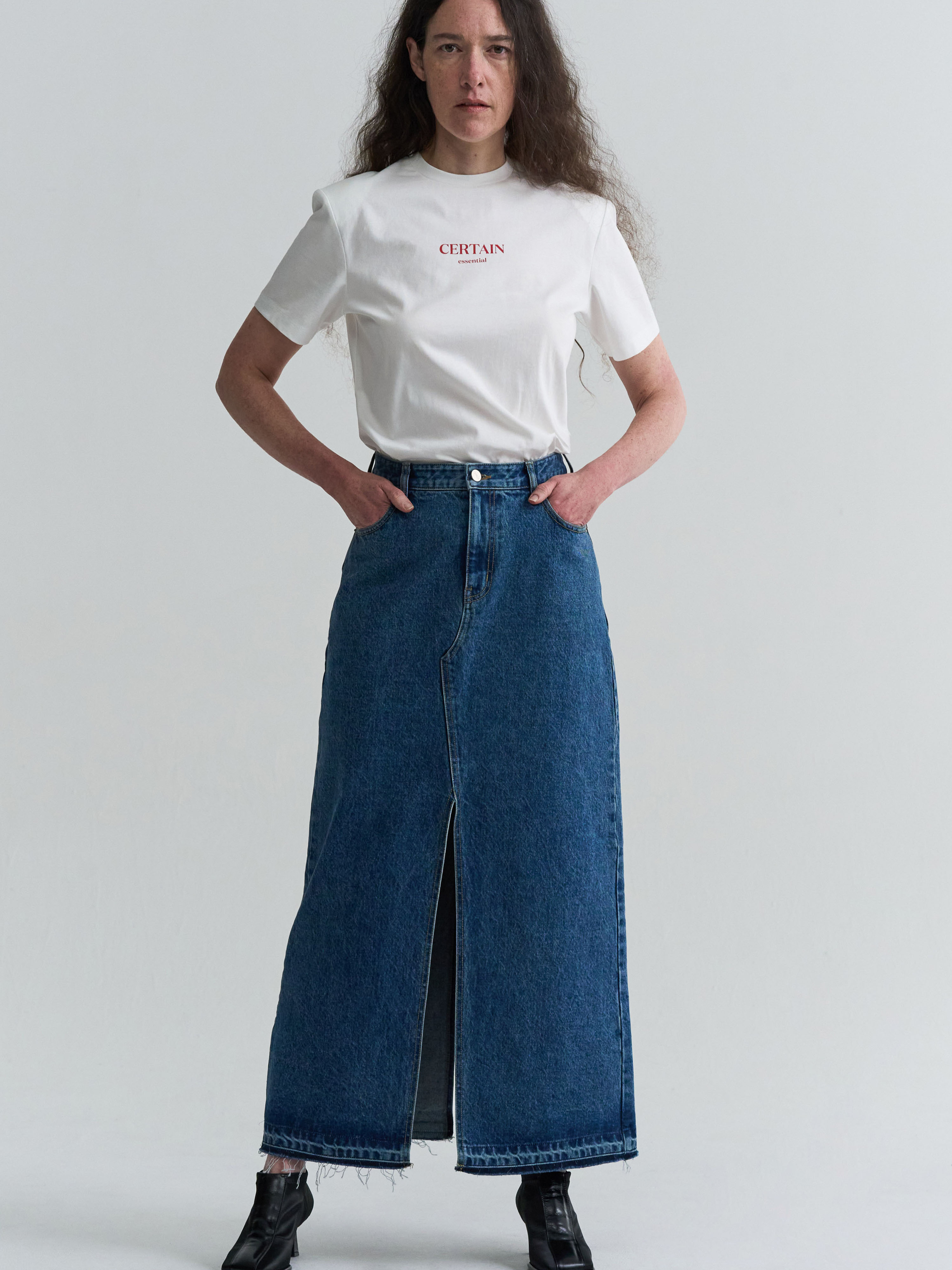 SLIT MIDI DENIM SKIRT - BLUE