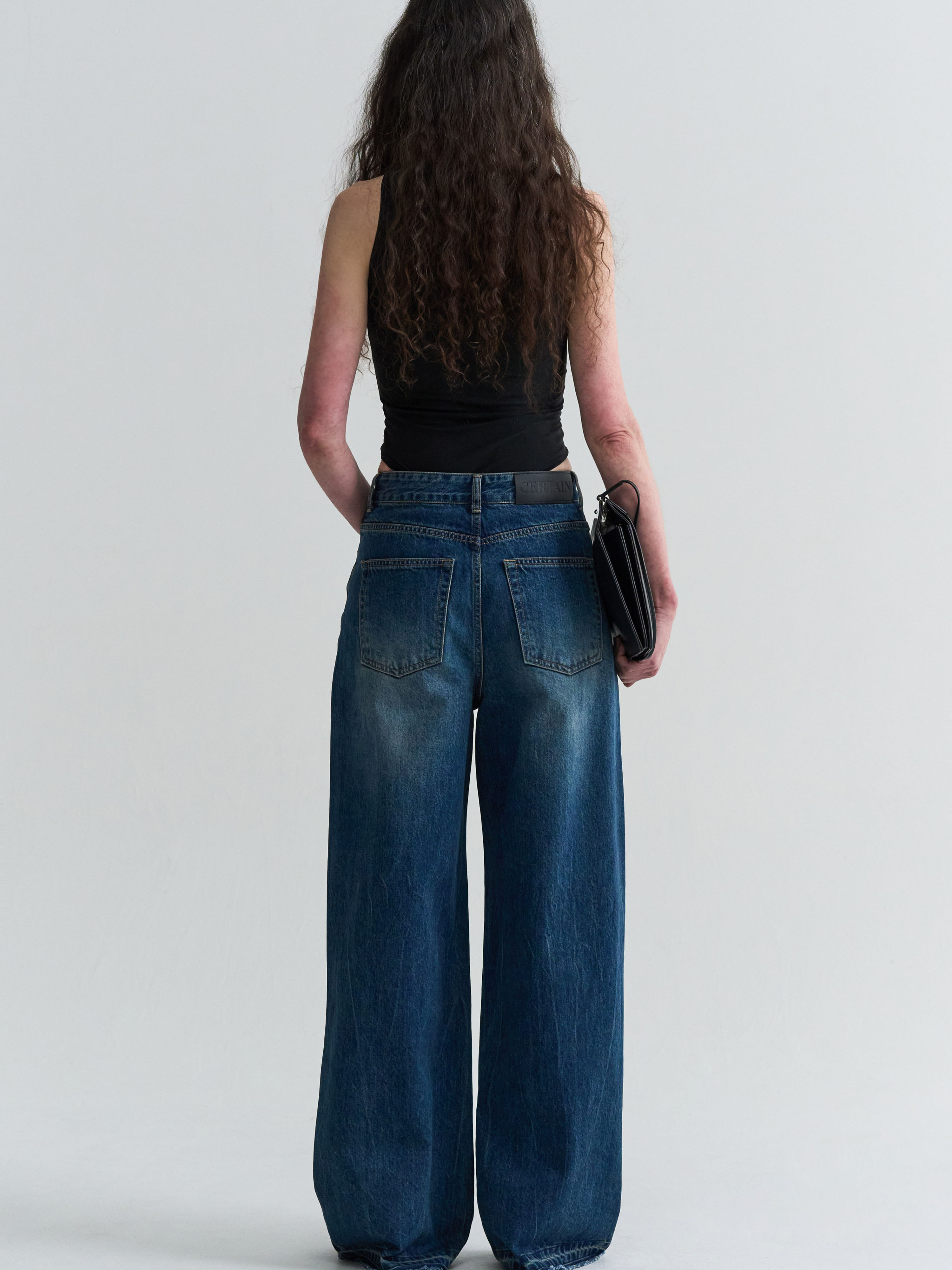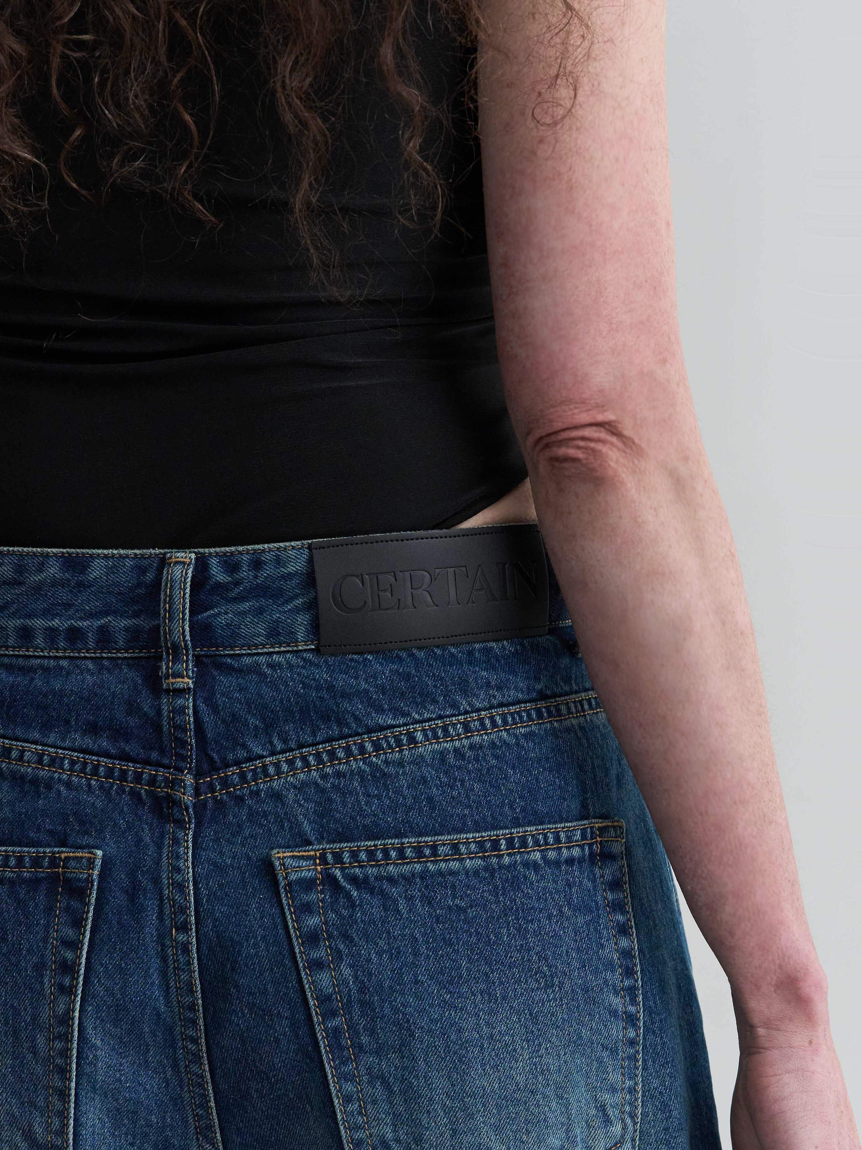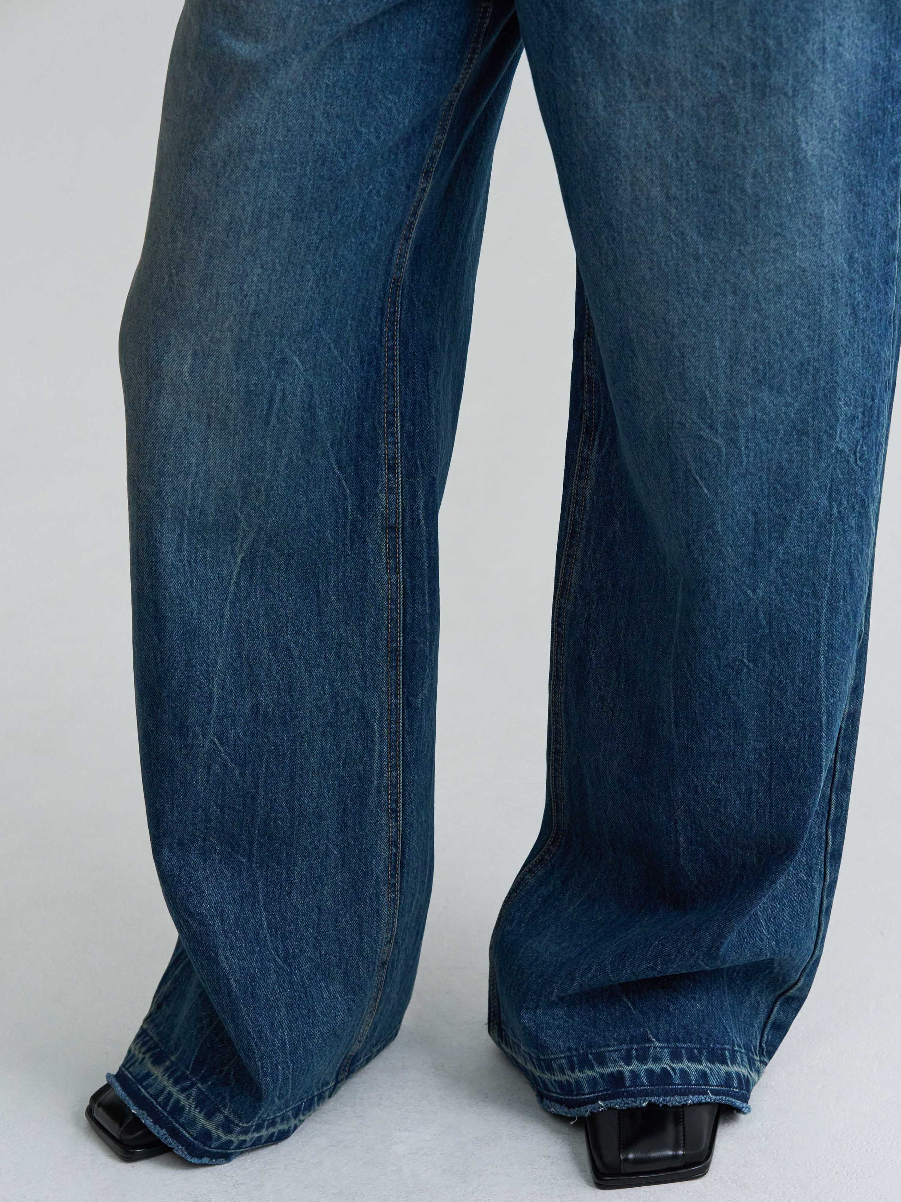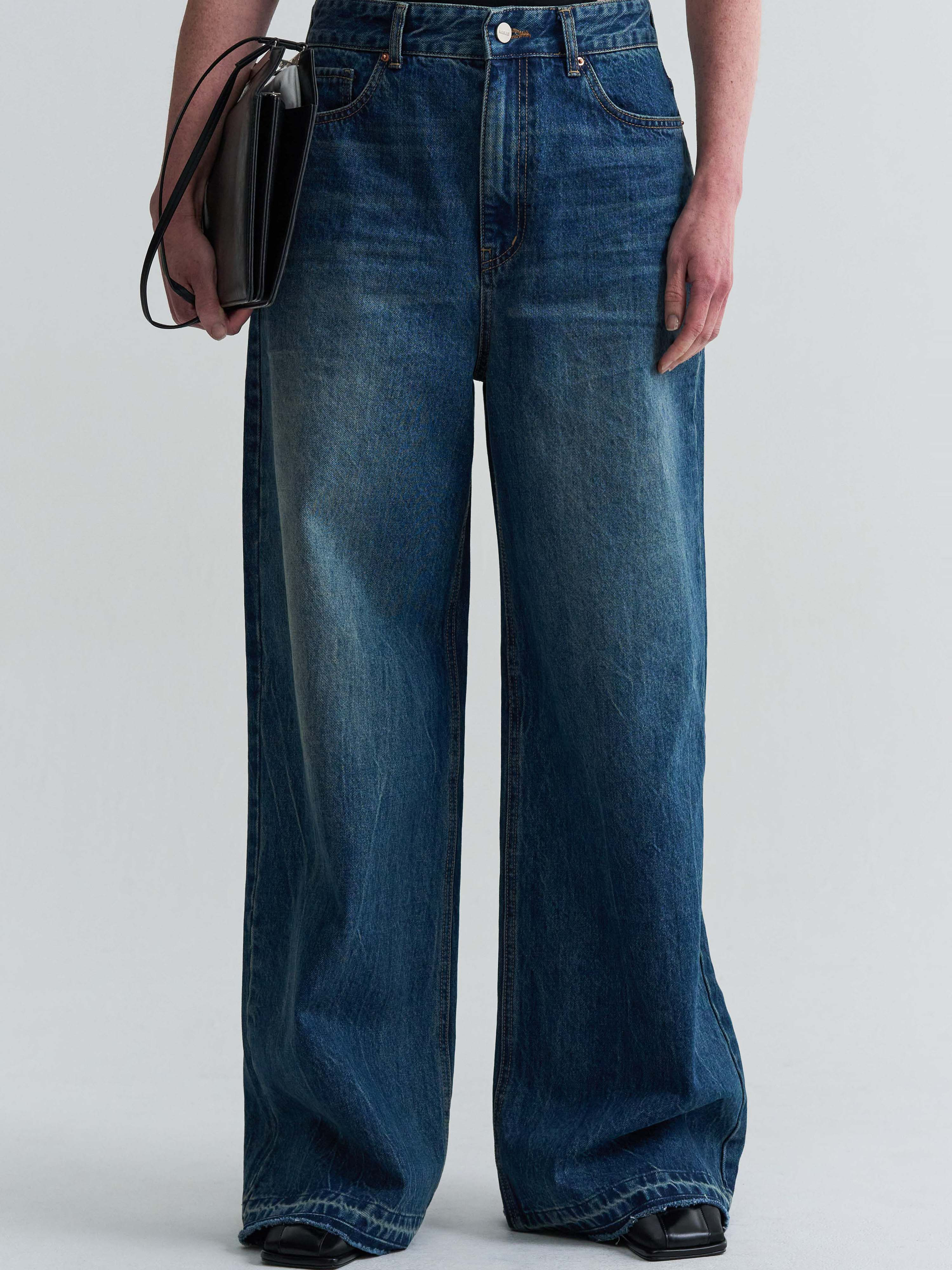 WASHED LOW-RISE DENIM - BLUE