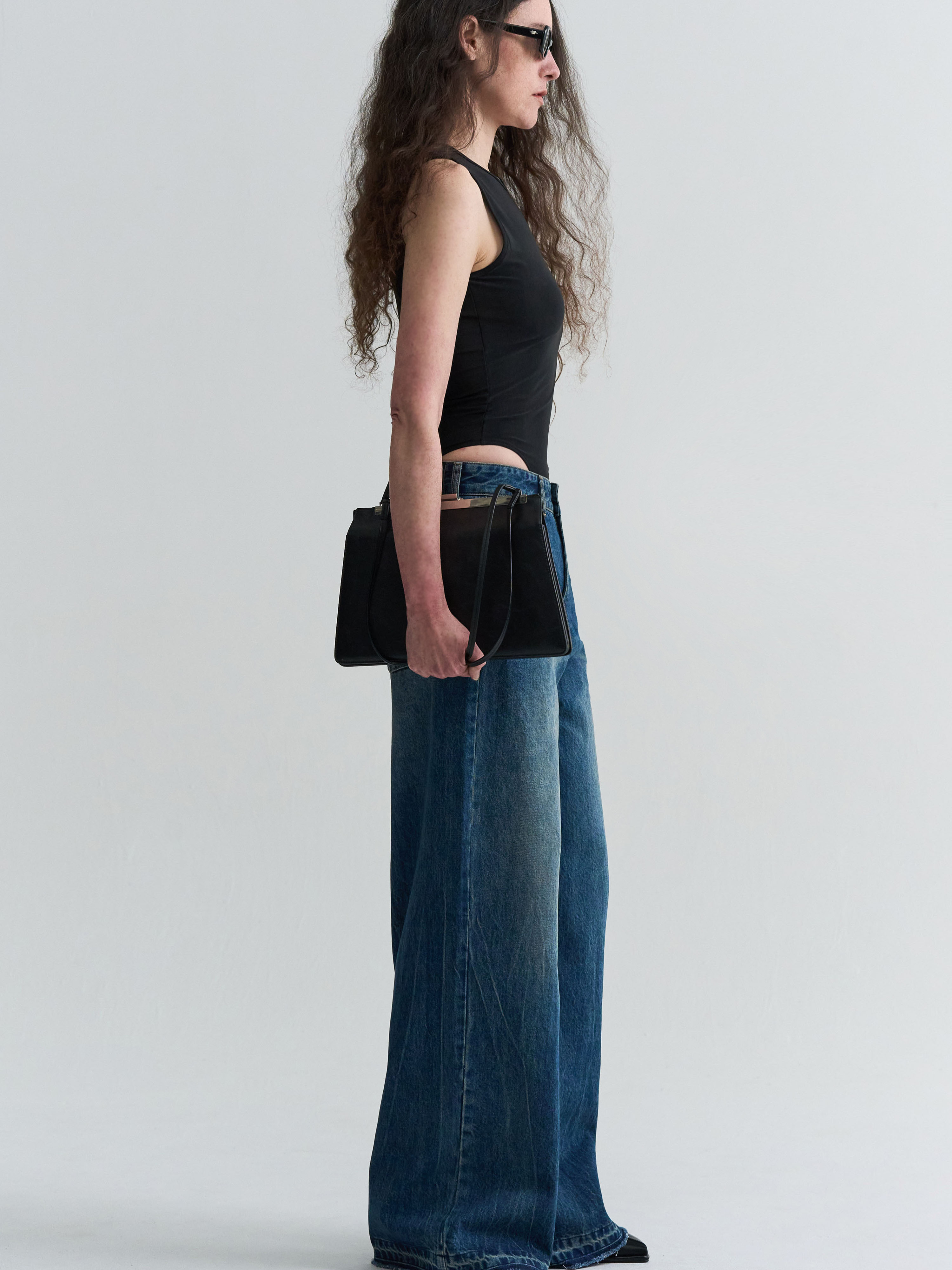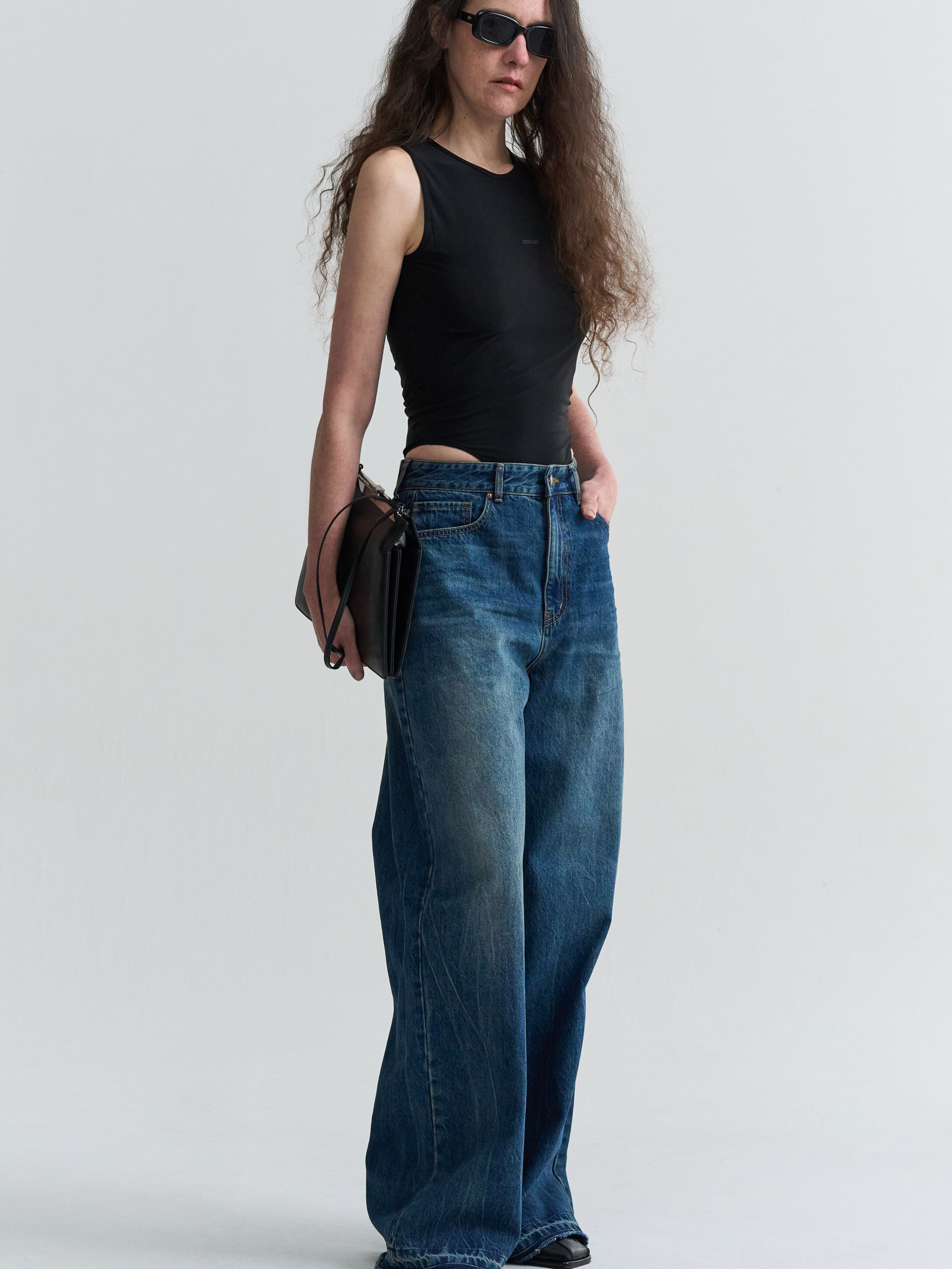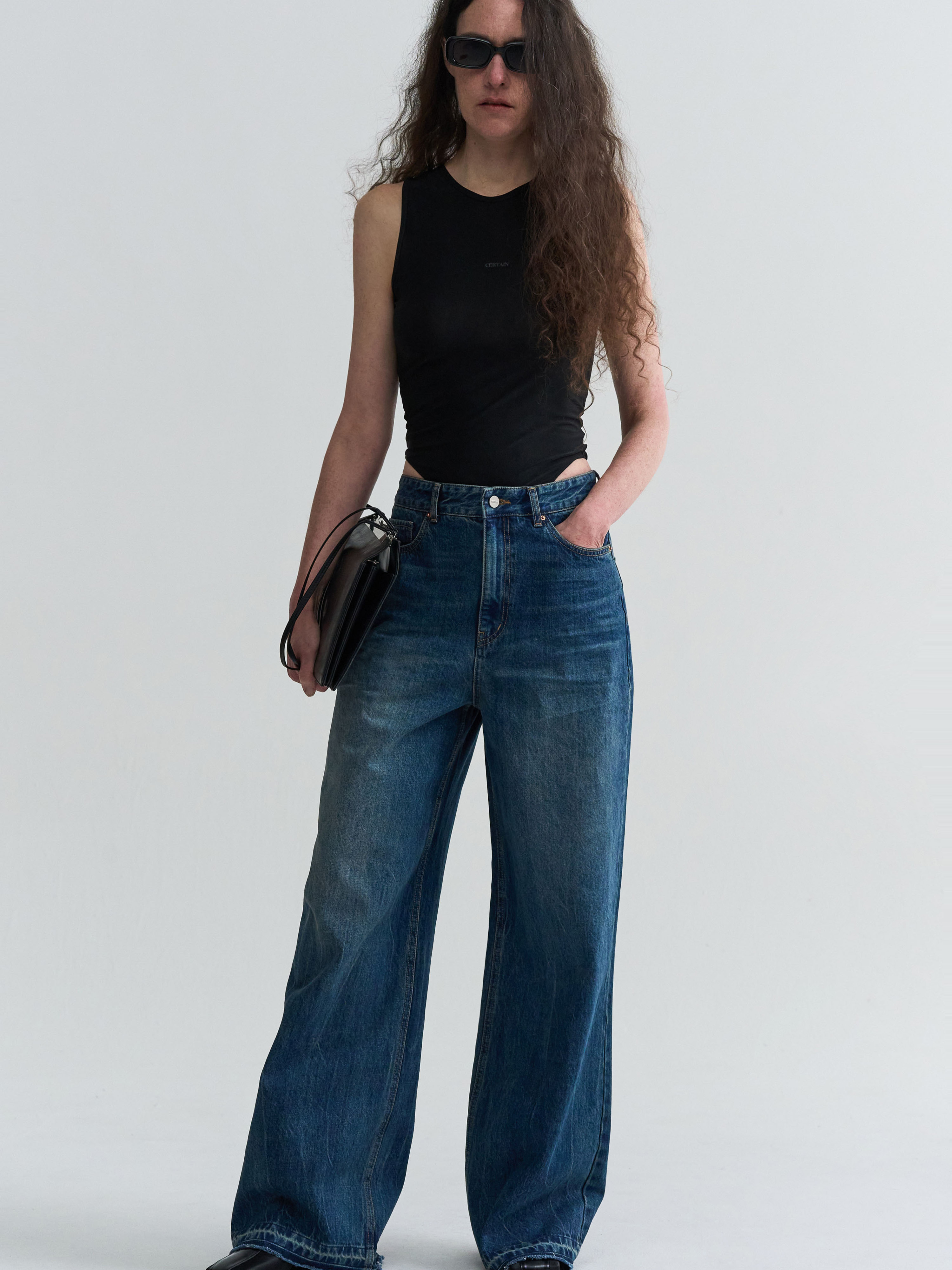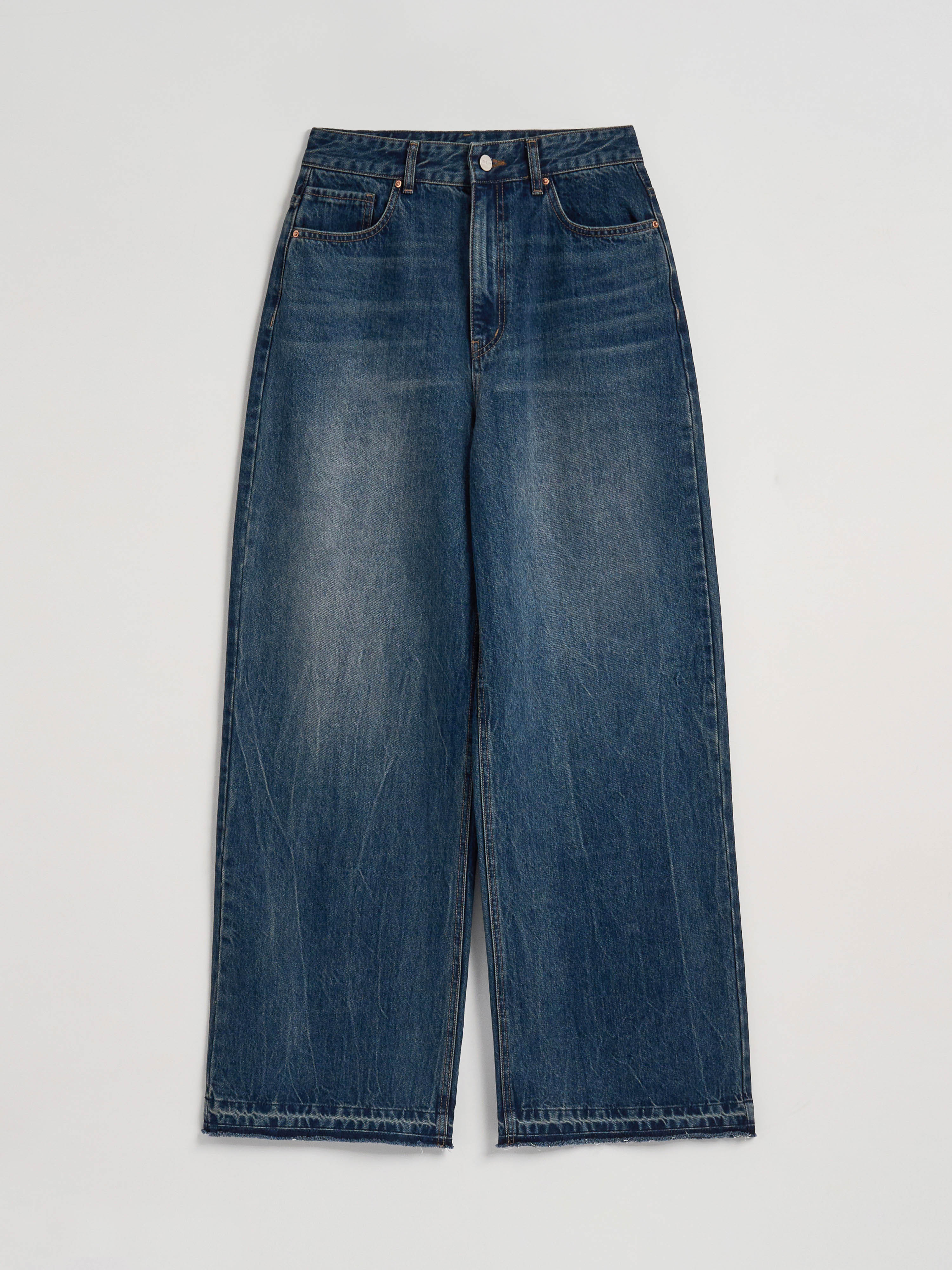 WASHED LOW-RISE DENIM - BLUE