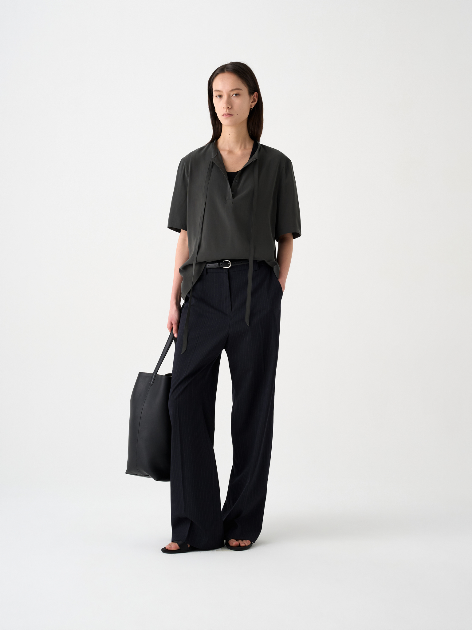 Æú¸®, ·¹ÀÌ¿Â, ¿ï È¥¹æ ¼ÒÀç¿¡ ¼¶¼¼ÇÑ ¼¼·Î ½ºÆ®¶óÀÌÇÁ¸¦ ´õÇØ ¸Å²ô·¯¿î Ç¥¸é°ú À¯¿¬ÇÑ µå·¹ÀÌÇÁ¸¦ °®Ãá ½ºÆ®¶óÀÌÇÁ ½½·¢½ºÀÔ´Ï´Ù. Ç㸮 ¾ÈÂÊÀÇ Ç㸮 ¾È°¨ ¸¶°¨°ú ³ÐÀº º§Æ® °í¸®°¡ ´õÇØÁø »ó´ÜÀº Å×ÀÏ·¯µå ÆÒÃ÷ ƯÀ¯ÀÇ ±¸Á¶°¨À» »ì¸®°í, ¾ÕµÚ ·¹Á÷±â°¡ ÀâÈù ¿©¼º ½ºÆ®·¹ÀÌÆ® ÆÒÃ÷ ¶óÀÎÀÌ °ðÀº Á÷¼±À» °­Á¶ÇÕ´Ï´Ù. À¯»çÇÑ ÅæÀÇ ÀÚÄÏÀ̳ª ¼ÅÃ÷¿Í ¸ÅÄ¡ÇÏ¸é ¿ÀÇǽº·è ÆÒÃ÷·Î ´ÜÁ¤Çϸ鼭µµ Èû ÀÖ´Â ½ºÅ¸ÀϸµÀÌ ¿Ï¼ºµË´Ï´Ù.